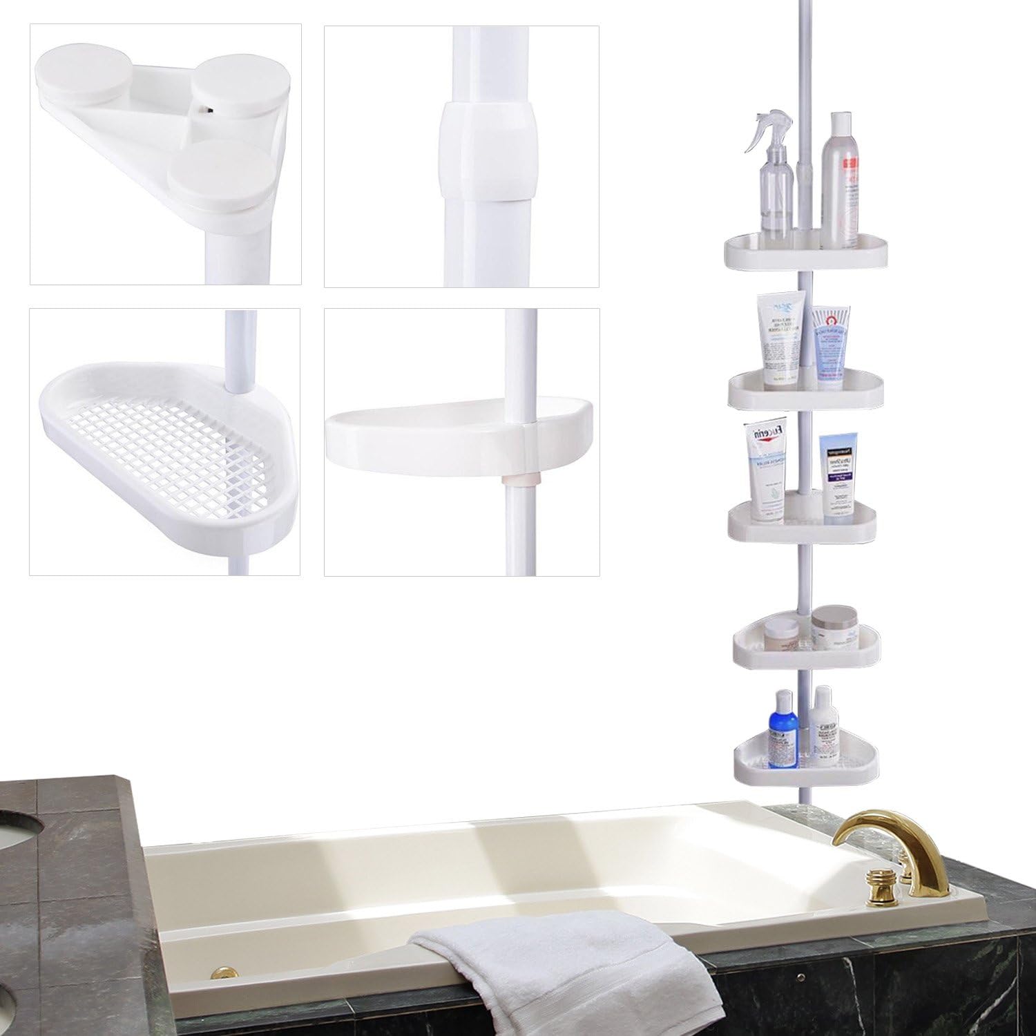 Zenna Home Premium Bathtub And Shower Pole Caddy With 4 Shelves In