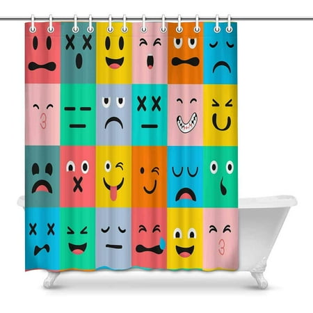 Pop Emoticons Emoji Bathroom Shower Curtain Set 60x72 Inch